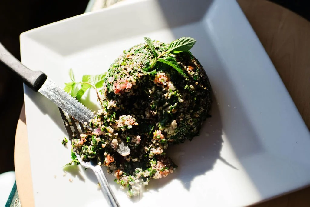 Parsley, onions, tomatoes, bulgar, lemon, extra virgin olive oil