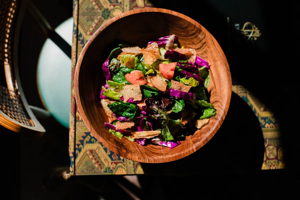 Our signature Salad prepared with fried pita and seasonal vegetables
